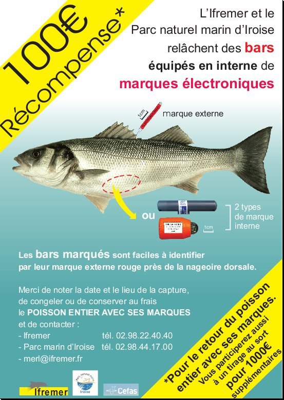 L’Ifremer et le parc naturel marin viennent de lancer récemment une campagne de marquage électronique du bar (Dicentrarchus Labrax).