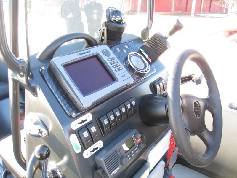 Au niveau options, nous sommes gâtés avec un davier, un treuil électrique, un GPS/Sondeur/Traceur Lowrance HDS 5, une stéréo marine Fusion avec 2 haut-parleurs et une interface de commande étanche, une radio VHF Lowrance LVR-250 mais aussi un Rollbar Inox accueillant les feux de navigation, un éventuel radar, etc… sachant que d’autres options sont disponibles.