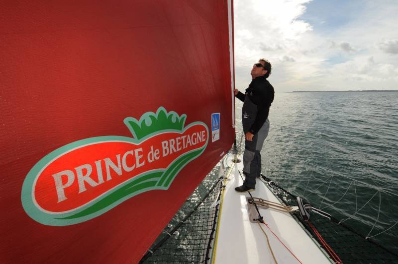 Les voiles sont désormais affalées pour Lionel Lemonchois qui vient de décrocher la première place du podium en catégorie Multi 50, le 15/11/2010 à 17:52:48.