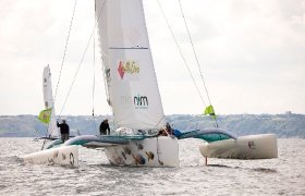 Lalou Roucayrol (Région Aquitaine-Port Médoc) a coupé la ligne d’arrivée de la Route du Rhum à 01h 32 min (HF) ce matin.